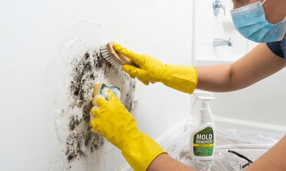 - Prvo uklonite vidljivu buđ. Nemojte je samo prebrisati krpom, već koristite četku, strugač ili sunđer. Rukavice i maska su obavezni jer se spore šire vazduhom.